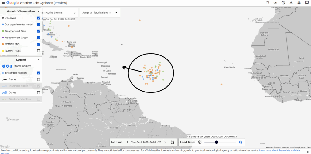 In fact, you can see the lower-level wind forecast from the European model for tomorrow into Thursday above. Notice how Imelda (approaching from the lower left) sees a burst of wind later tomorrow (winds over 100 mph down to about 5,000 feet based on this outlook). This is what could end up impacting Bermuda as it approaches late tomorrow and very early Thursday morning.