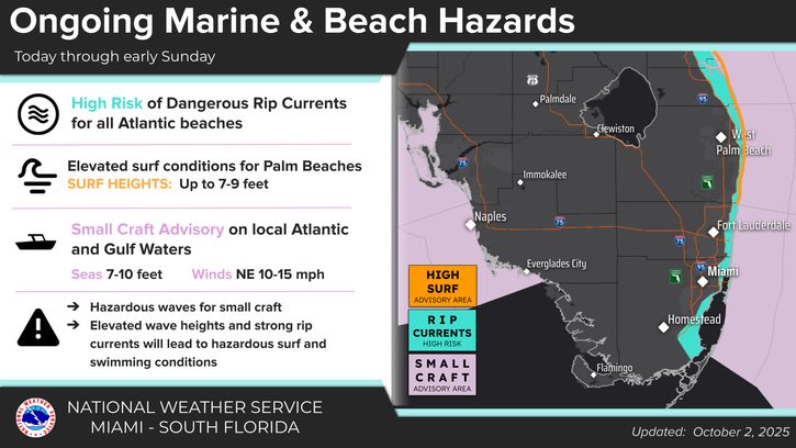 On the U.S. East Coast, the northern shores of the Caribbean, the Bahamas, and parts of Atlantic Canada, there will continue to be rough surf, beach erosion, rip currents, and tidal flooding risk as a result of both Humberto and Imelda. This will take a couple days to subside. Caution is continued to be advised.