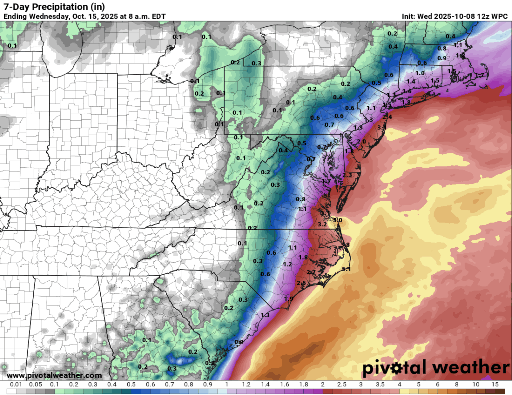 So, now that we know not to focus on the name or “type” of storm it is, what will the impacts be? Well, that’s going to depend on track. A few things seem likely: Rough surf, potential for beach erosion, some element of tidal flooding, gusty winds on the coast. What are we unsure of? How strong will the winds be? Will they make it farther inland? How severe will tidal flooding be? Which location will experience the worst conditions? How long will this last? Who sees the heaviest rainfall?