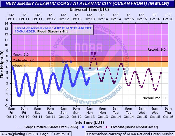 Atlantic City has only exceeded 8 foot tide levels 8 previous times (last with Sandy in 2012 at 8.8 feet). So to get close 3 straight cycles would be impressive. You have to consider not just the level of the tide, but the compound risk of multiple significant high tides. Coastal flooding will be firmly moderate to perhaps major at times through tomorrow.