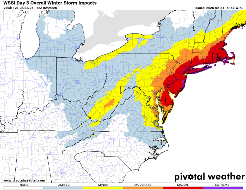 In brief: An extremely impactful winter storm is going to impact the Mid-Atlantic and southern New England beginning tomorrow afternoon and continuing through Monday. Blizzard conditions, powerful winds, heavy snow, and coastal flooding are all part of the mix.