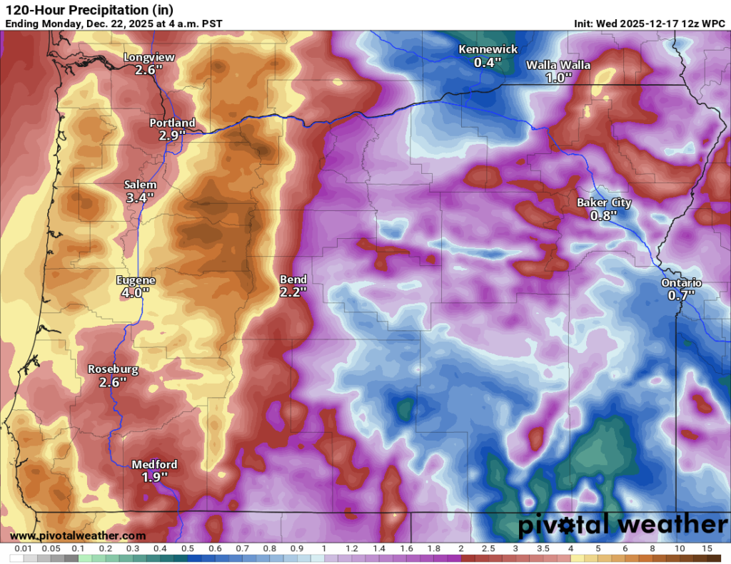 Moving southward, the next target of the atmospheric river will be Oregon. Heavy rain and mountain snows will move in tomorrow through Saturday.