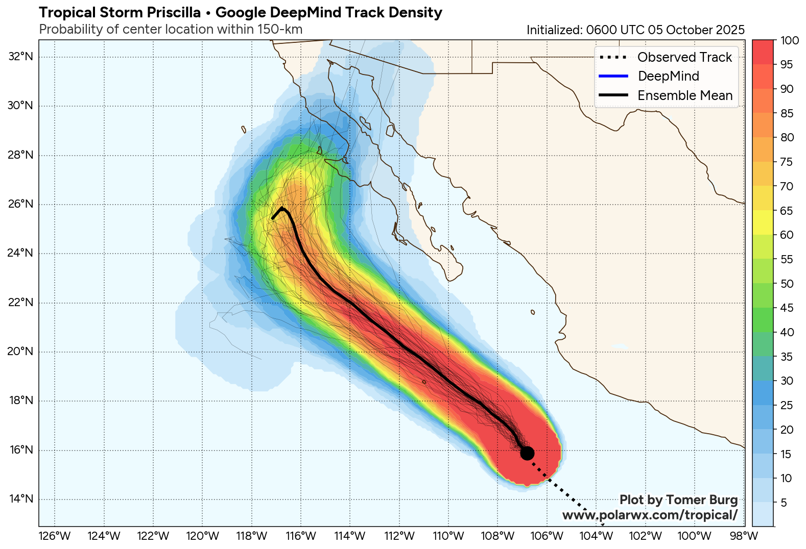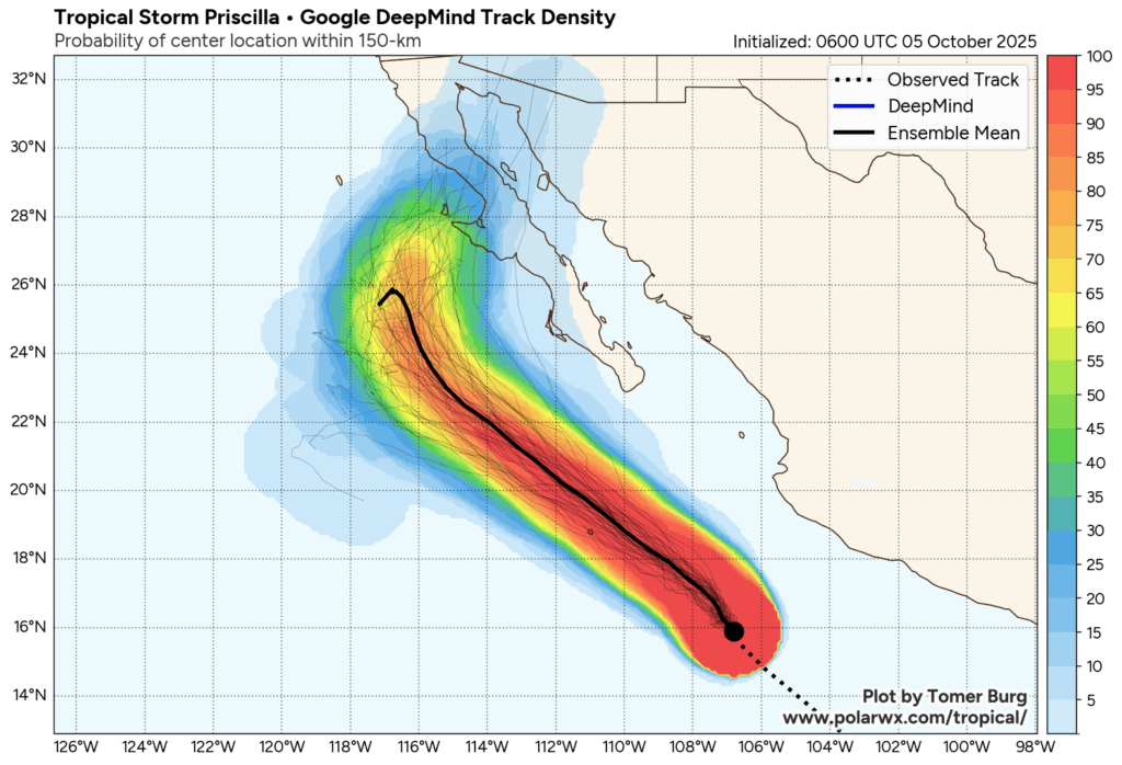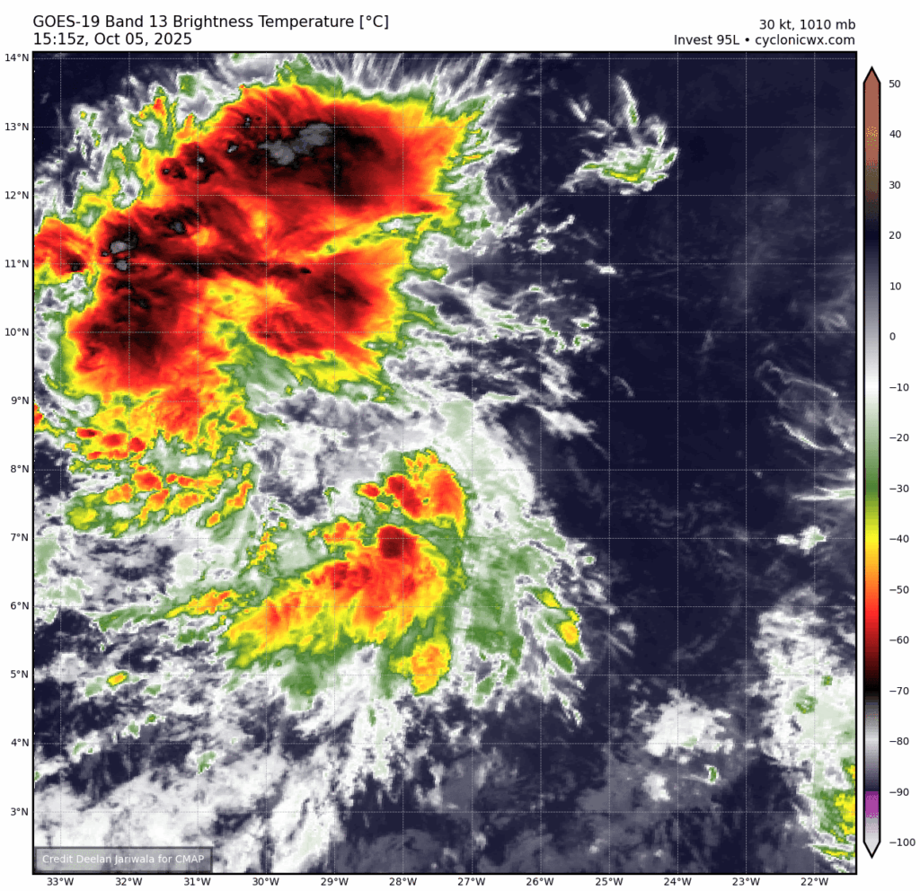 In brief: Invest 95L in the Atlantic is a ways from developing yet, and it currently looks to track north of the islands later this week. Still, we expect development eventually. Meanwhile, Tropical Storm Priscilla in the Pacific is worth watching in about a week or so for potential heavy rain in the Southwest.