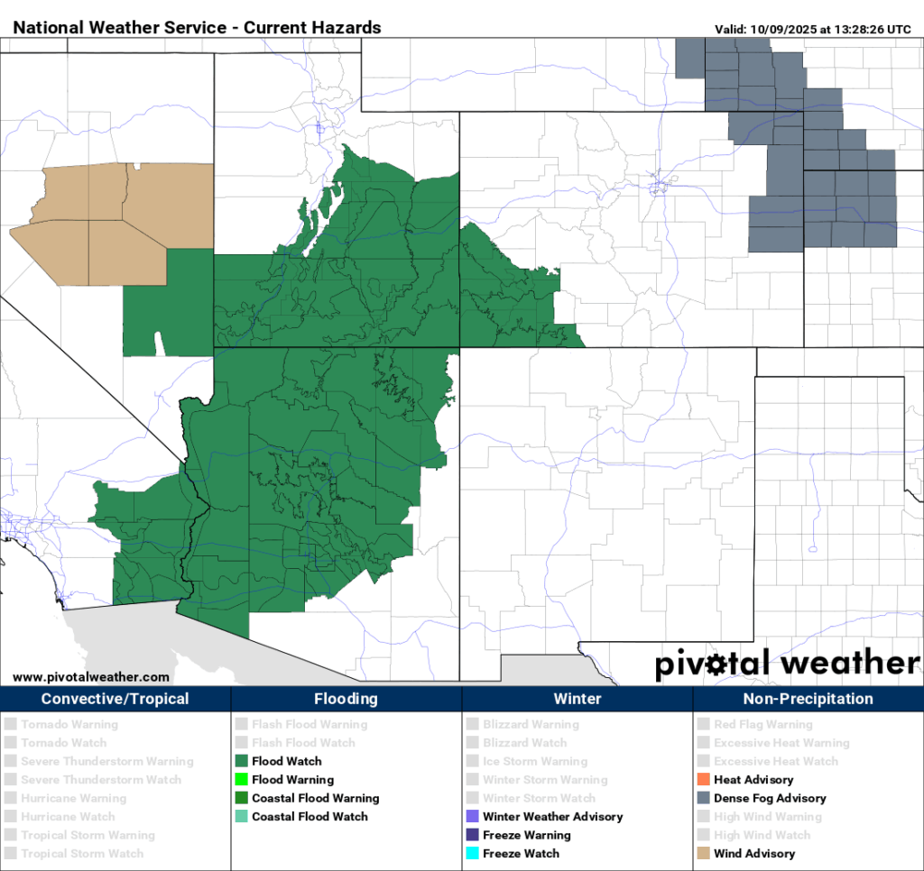 Flood watches are now posted across Arizona, southern Utah, southwest Colorado, and even parts of Nevada and California, in anticipation of several days of heavy rain chances thanks to tropical moisture coming out of the Pacific.