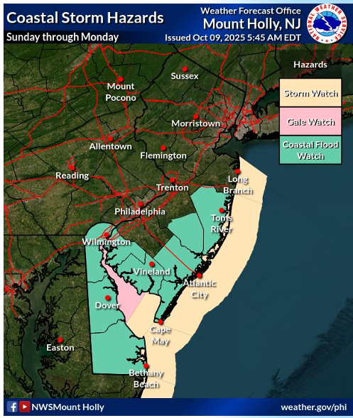 In brief: A major coastal storm will produce heavy rain, gusty winds, severe beach erosion and potentially major coastal flooding from North Carolina through New Jersey, Long Island, and southern New England this weekend and early next week. Tropical Storm Jerry will brush past the Leeward Islands today. And the Desert Southwest is primed for a major rainfall event courtesy of Priscilla, with significant flash flooding possible tomorrow.