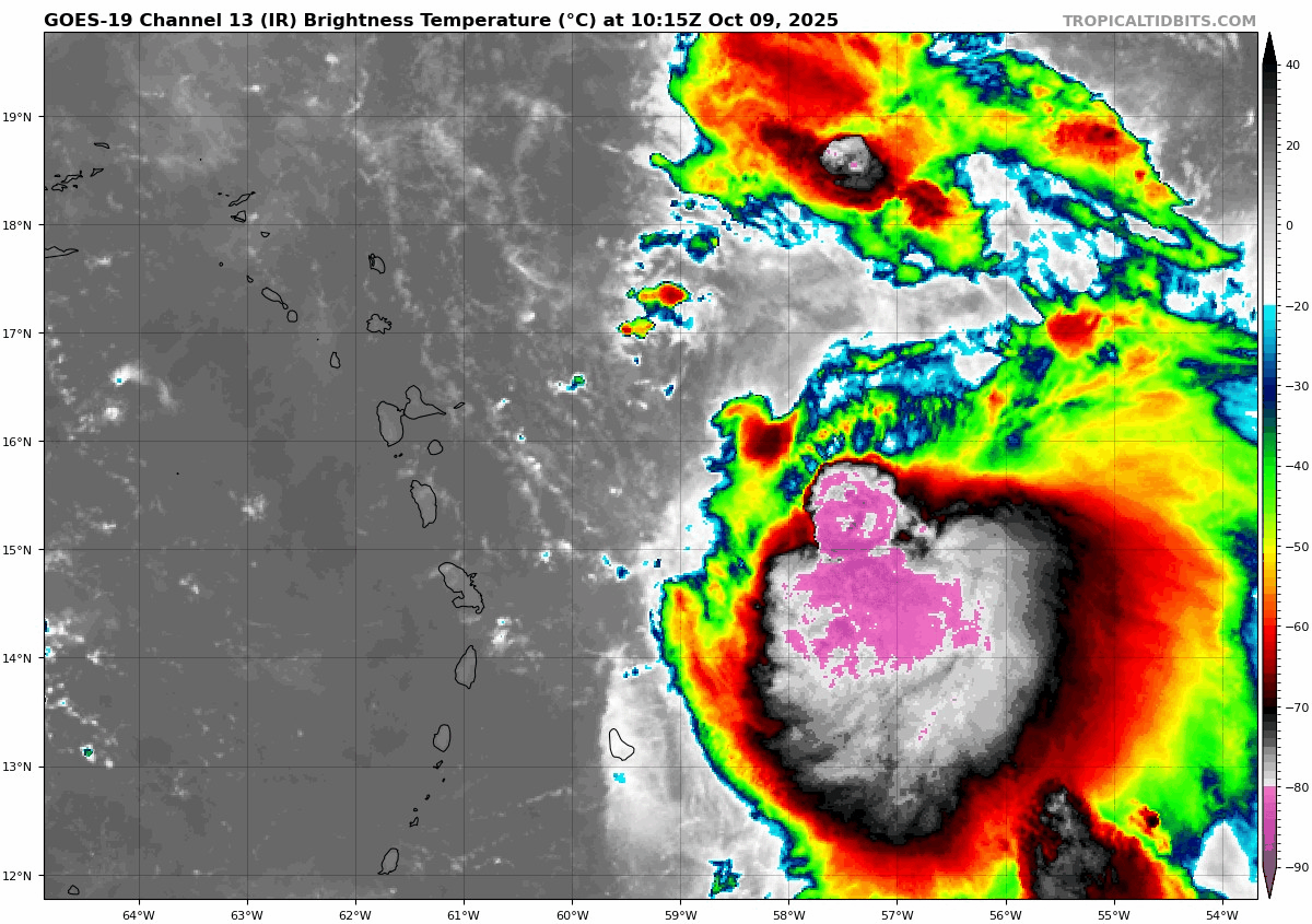 Jerry will pass just northeast of the islands today, brushing some of them with tropical storm impacts, particularly Antigua and Barbuda but also some of the adjacent islands. Thankfully, Jerry is quite a lopsided storm at this time, with the majority of its wind on the eastern side. With the slightly calmer winds of the western side impacting the islands, this should help mitigate impacts and rainfall some.