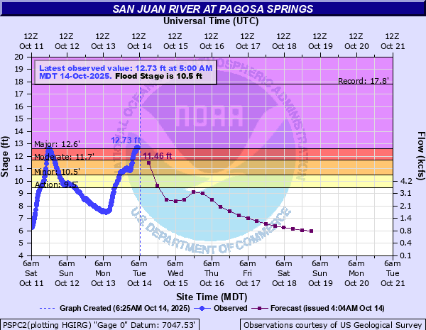 Major flooding is again occurring in Pagosa Springs, CO. (NOAA)