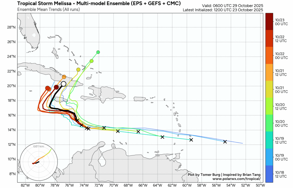 In brief: Melissa will struggle for another day or so before it likely explodes into a major hurricane near Jamaica, yielding a lot of bad things. We are most troubled by the flooding potential in Haiti, eastern Cuba, and Jamaica. Whatever the case, this is going to be a destructive, very bad storm for those locations.