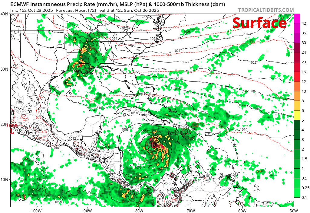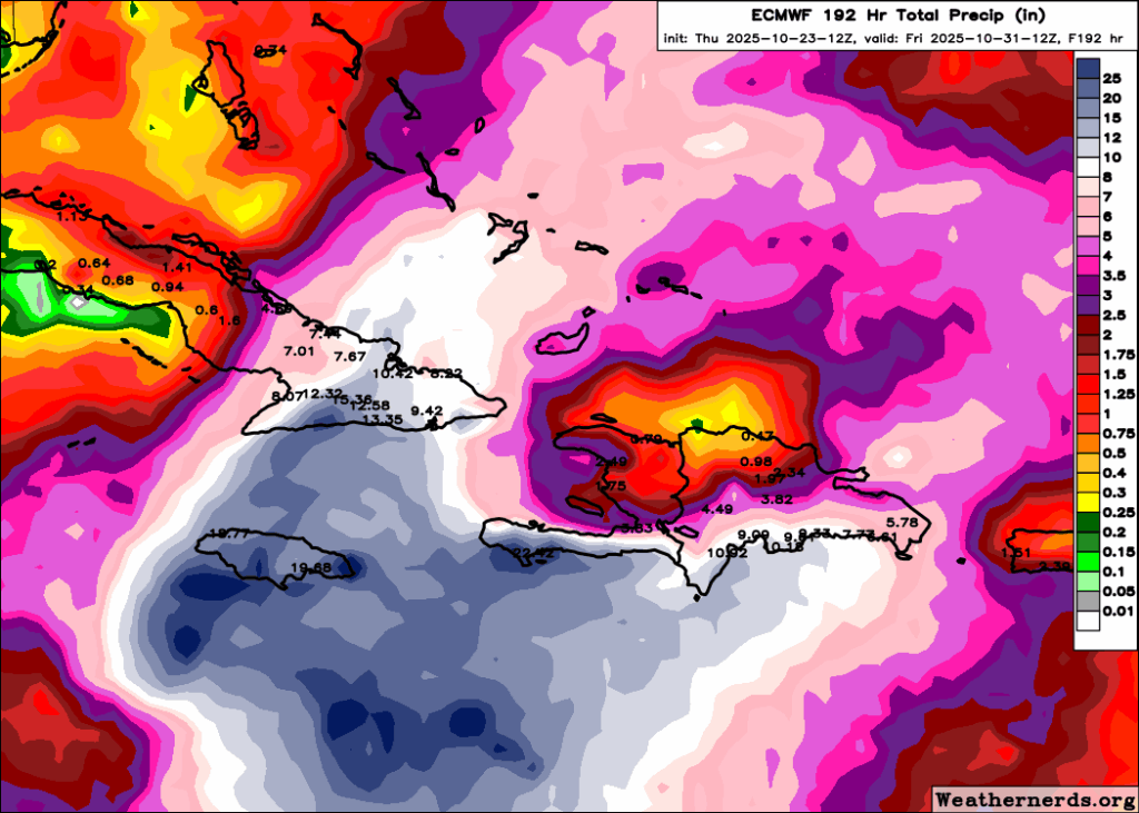 Unfortunately, it’s tough to argue that these totals can’t be achieved. The slow movement and rapid intensification should allow for this to occur. Additionally, heavy rain is likely in eastern Cuba and southwest Haiti.