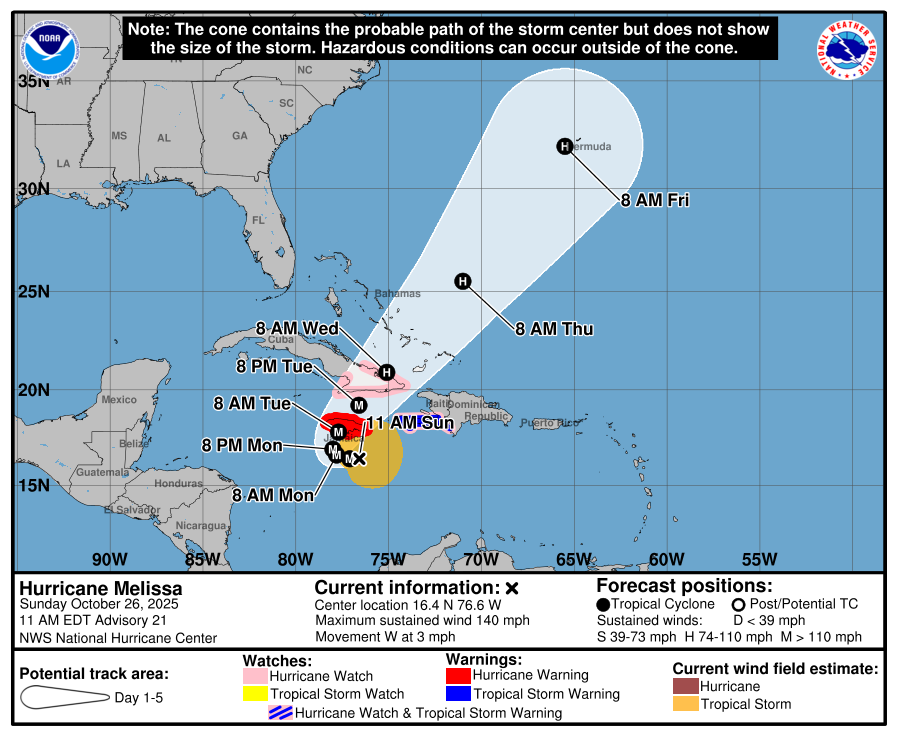 - Significant impacts are likely in the southeast Bahamas and perhaps the Turks and Caicos on Wednesday as Melissa loses some intensity and pass through. It may still be a borderline major hurricane as it hits the islands.