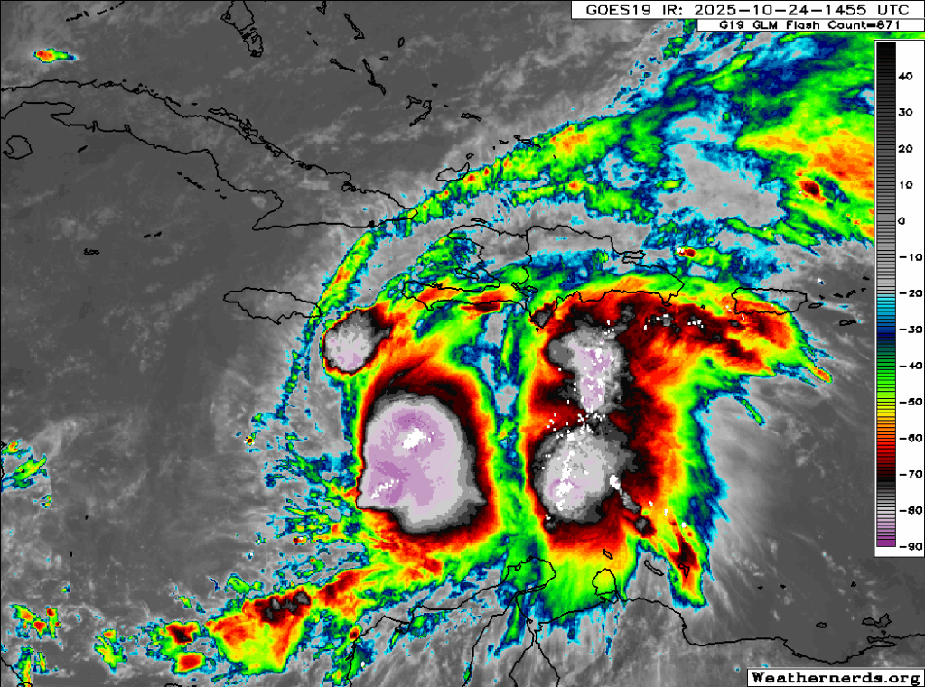 Changes since yesterday have included Melissa’s center either shifting or reforming to the south and east. The storm itself remains fairly disorganized and lower-end intensity-wise.