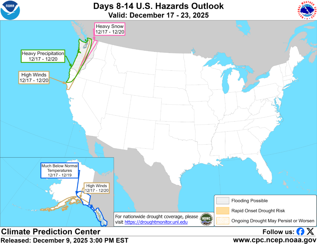 And the 8-to-14-day hazards outlook is once again highlighting the Northwest for potential heavier precipitation after December 16th.