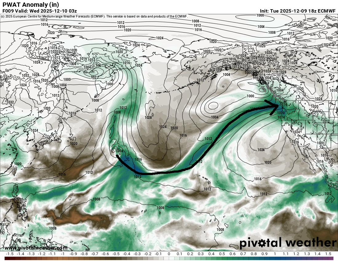 Clearly this pattern is juiced right now. The warm Pacific Ocean is not hurting this cause either. Warmer than normal water extends from the Philippines to north of Hawaii to the West Coast. It’s tremendously moisture-laden at the moment.