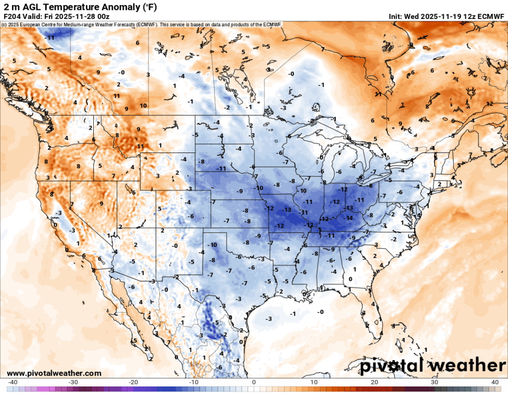 For those of you hearing chatter about stratospheric warming and the polar vortex breaking down and other such things, this is not that. Impacts from that stratospheric warming event (if they are felt at all) would occur more into December. It’s important to keep in mind that not all stratospheric warming events are equal. Some lead to cold. Others have minimal impact. This is a branch of the science we’re gradually learning more about but are not quite experts in just yet.