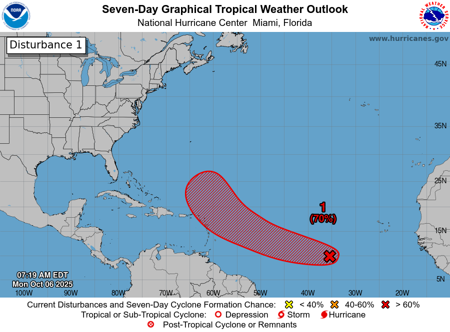 Our Atlantic tropical wave, Invest 95L, is sitting around a 70 percent chance of development this week.